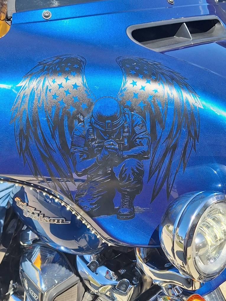 My husband is dedicating his motorcycle to all his lost brother's from the military and he chose this as one of the things we used to put on it. As of right now its just a decal but it will be removed and then reapplied as a stencil and airbrushed on
